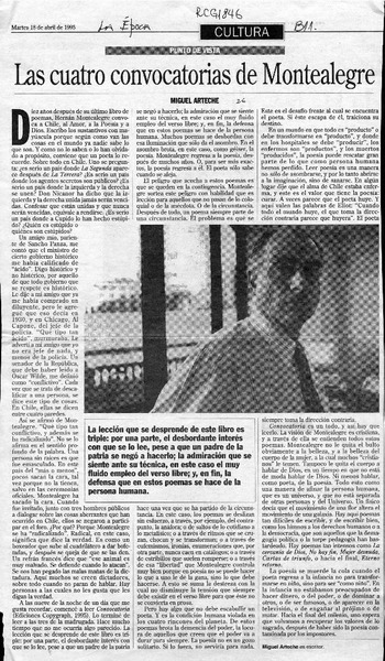 Las cuatro convocatorias de Montealegre [artículo] Miguel Arteche.