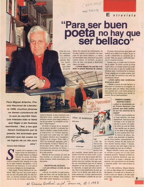 Autores chilenos - ARTECHE, MIGUEL - Entrevistas