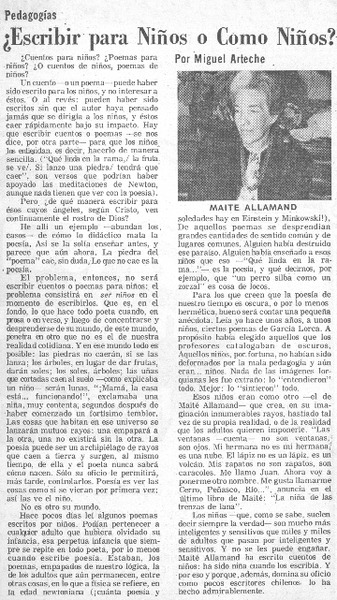 Escribir para niños o como niños? [artículo] Miguel Arteche.