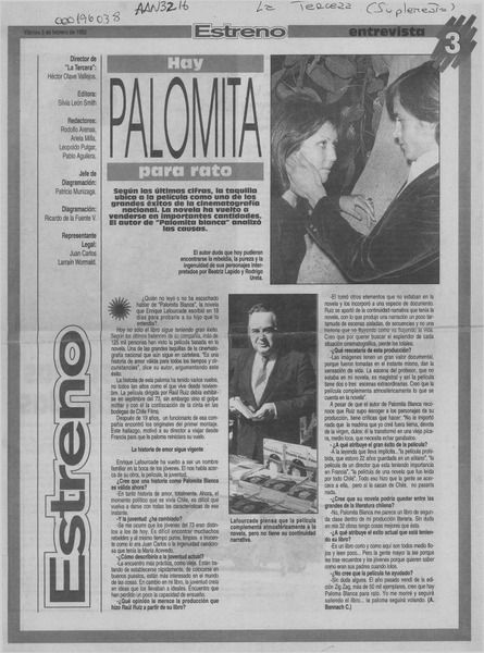 En Octubre estrenan filme "Palomita blanca" [artículo] Carmen Rodríguez.