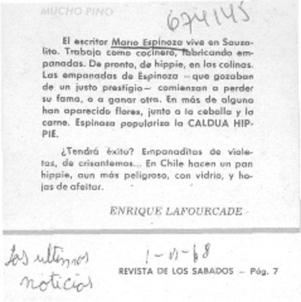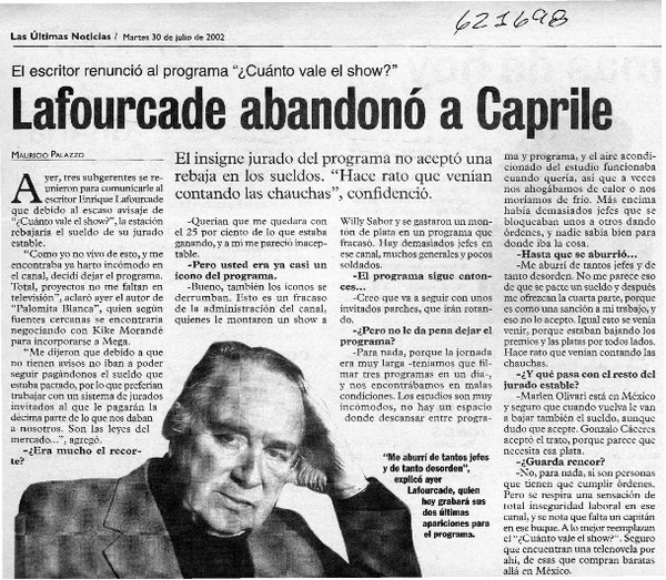 Autores chilenos - Lafourcade, Enrique - ENTREVISTA