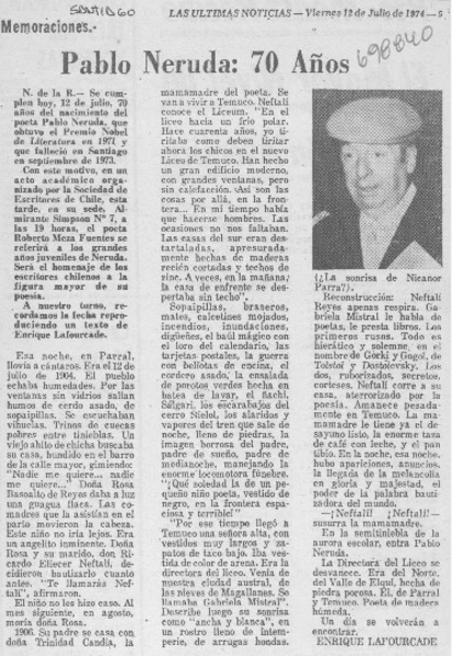Pablo Neruda: 70 años [artículo] Enrique Lafourcade.