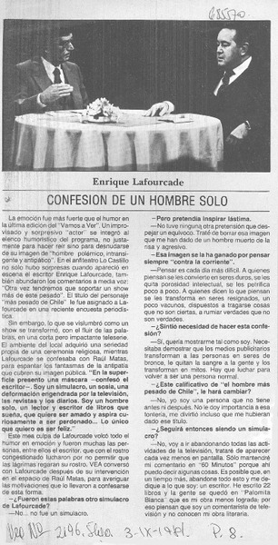 Confesión de un hombre solo : [Entrevista] [artículo]