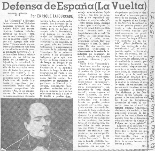 Defensa de España (La vuelta) [artículo] Enrique Lafourcade.