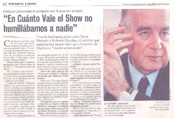 Enrique Lafourcade lo compara con "Locos por el baile" : "En cuanto Vale el Show no humillábamos a nadie" [entrevista] Víctor García.