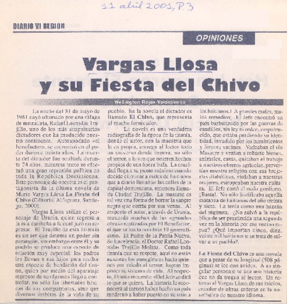Vargas Llosa y su fiesta del Chivo [artículo] Wellington Rojas Valdebenito.