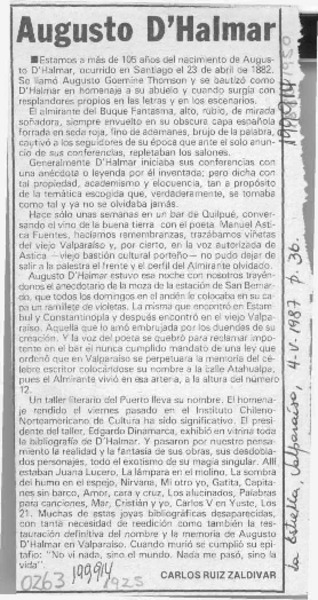 Augusto D'Halmar [artículo] Hernán del Solar.