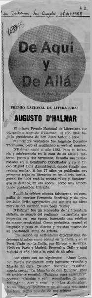 Primero, Augusto D'Halmar (1942) [artículo] H. Larenas.