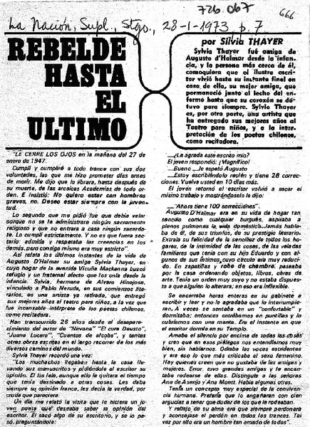 Rebelde hasta el último [artículo] Silvia Thayer.