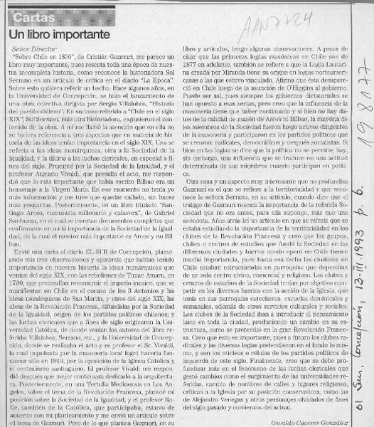 Un libro importante [artículo] Osvaldo Cáceres González.