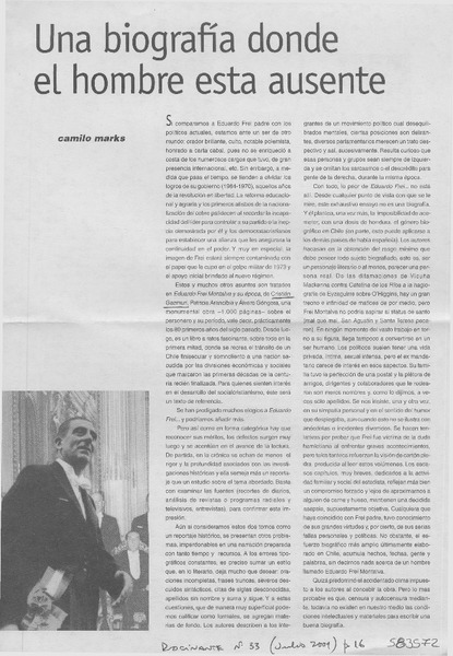 Una biografía donde el hombre está ausente [artículo] Camilo Marks