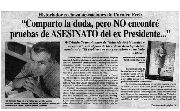 "Yo no descarto que hayan matado a Frei" [artículo] Andrea Bostelmann