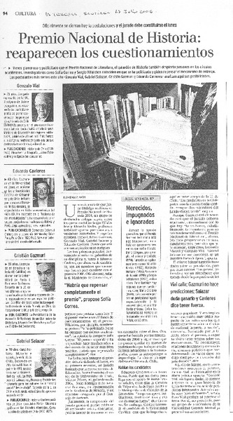 Premio Nacional de Historia: reaparecen los cuestionamientos [artículo] R. Careaga.