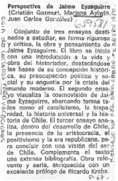 Perspectiva de Jaime Eyzaguirre. [artículo]