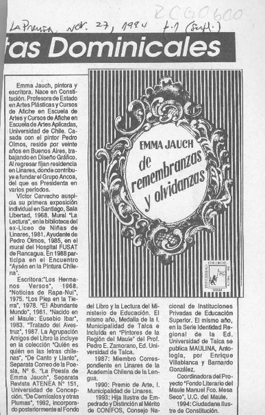 De remembranzas y olvidanzas, Emma Jauch [artículo]