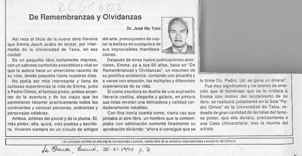 De remembranzas y olvidanzas [artículo] Jose Ilic Toro.