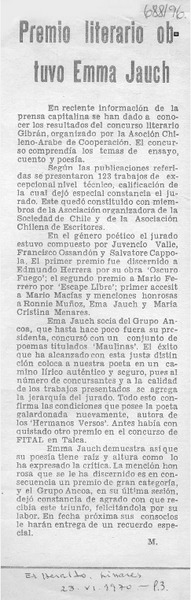 Premio literario obtuvo Emma Jauch [artículo] M.