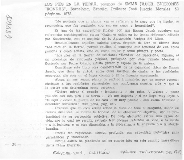 Quién es quién en las letras chilenas?: Emma Jauch [artículo] Pickwick.