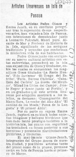 JAUCH, EMMA - Autores chilenos - OLMOS, PEDRO - Noticias de Rapa Nui