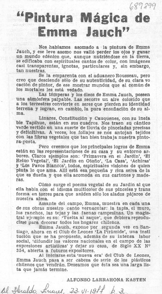 Pintura mágica de Emma Jauch [artículo] Alfonso Larrahona Kästen.