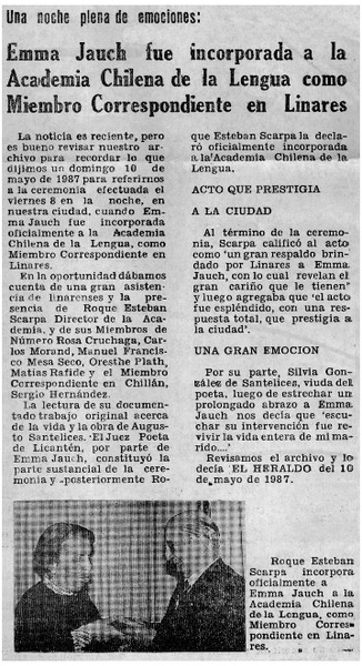Desde Linares Emma Jauch llega también a la Academia [artículo] Héctor González V.