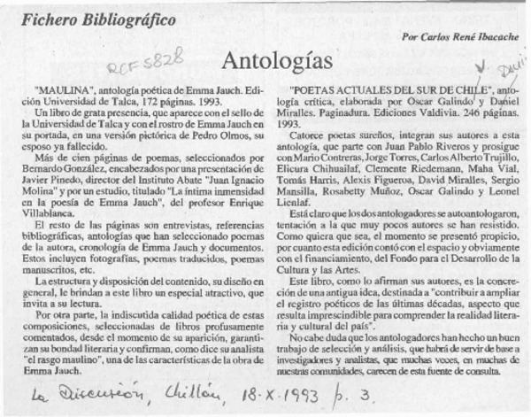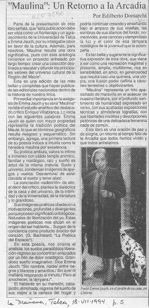 Maulina, Antología poética, Emma Jauch, Universidad de Talca, 1998 [artículo]