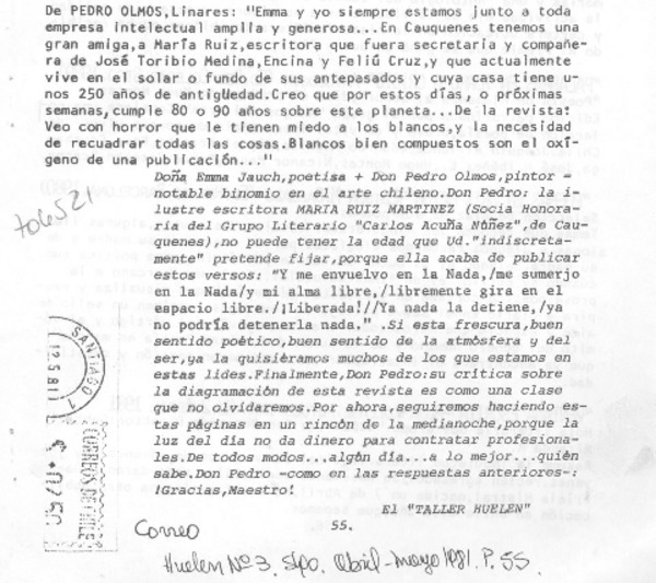 OLMOS, PEDRO - Autores chilenos - JAUCH, EMMA