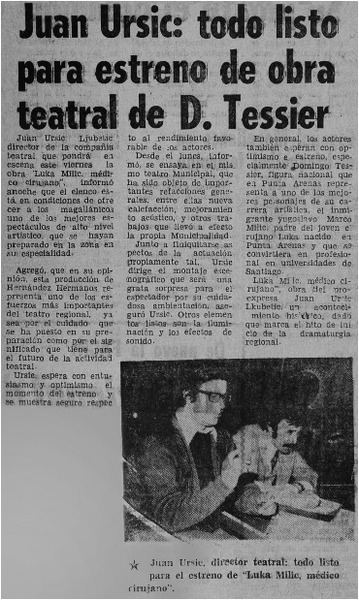 Juan Ursic: todo listo para estreno de obra teatral de D. Tessier. [artículo]