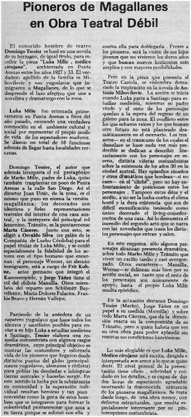 Pioneros de Magallanes en obra teatral débil. [artículo]