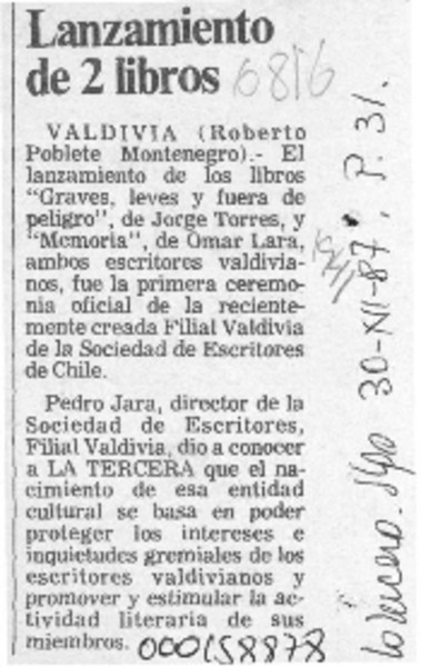 Lanzamiento de 2 libros [artículo] Roberto Poblete Montenegro.