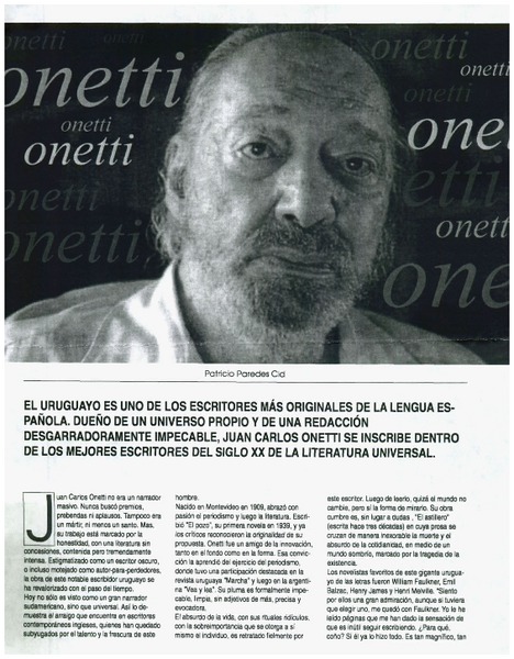 Juan Carlos Onetti [artículo] Patricio Paredes Cid.