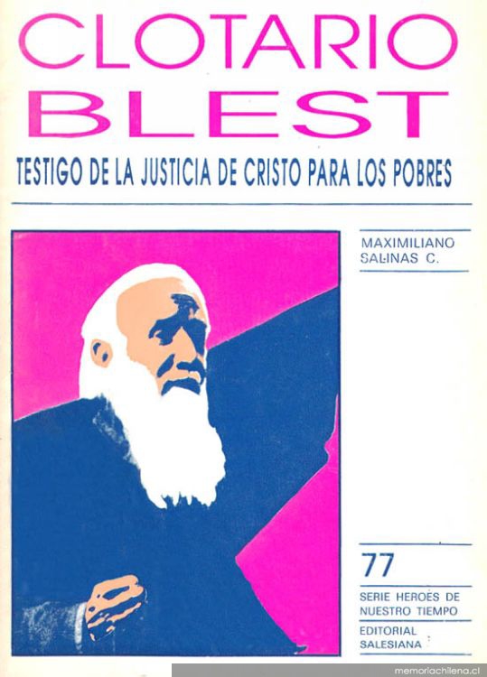 Clotario Blest : testigo de la justicia de Cristo para los pobres / Maximiliano Salinas C. 1a. ed. Santiago : Salesiana, 1991 (Santiago : Salesianos) 47 páginas