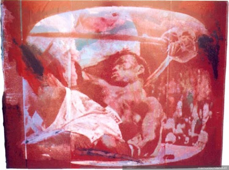 Original es pintura y fotoserigrafía sobre polipropileno de 150 x 120 cm.