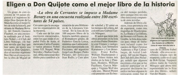 Cien escritores eligieron a "Don Quijote" como el mejor libro del mundo. [artículo]
