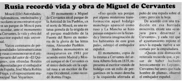 Rusia recordó vida y obra de Miguel de Cervantes [artículo] EFE.