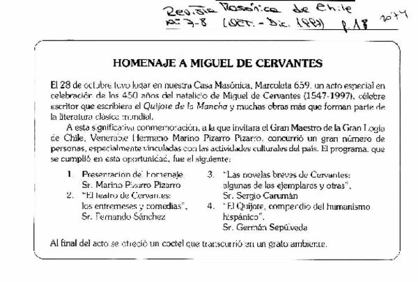 Cervantes (1547-1616) [artículo] Gabriel Hernández Anderson.
