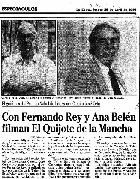Con Fernando Rey y Ana Belén filman El Quijote de la Mancha. [artículo]