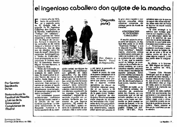 El ingenioso Hidalgo Don Quijote de la Mancha [artículo] Germán Sepúlveda Durán.
