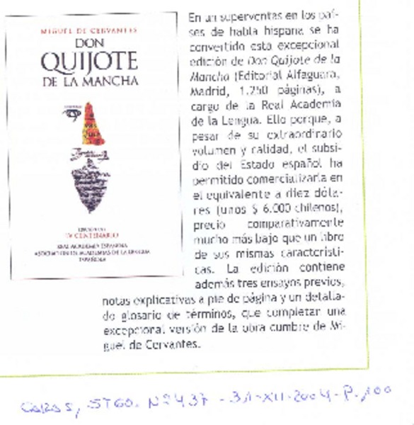 Anuncian edición de "el Quijote" para lectores latinoamericanos [artículo]