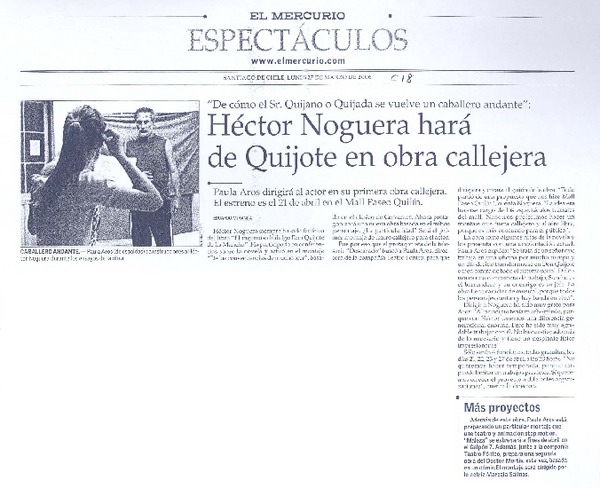 Héctor Noguera hará de Quijote en obra callejera [artículo] Eduardo Miranda
