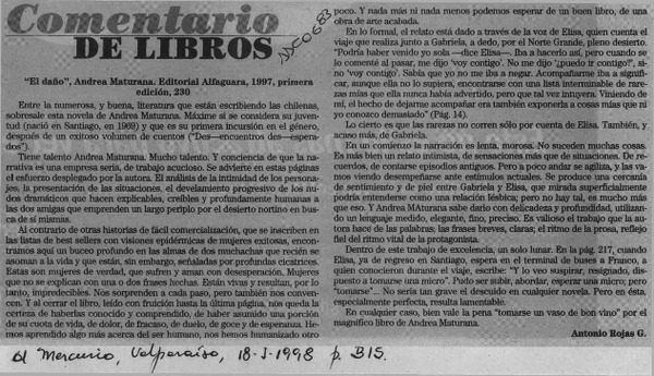 "El daño", la primera novela de Andrea Maturana [artículo].