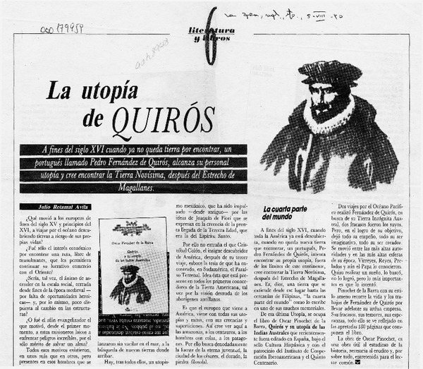 Quiros y su utopía de las indias australes  [artículo] José Rafael Reyes.