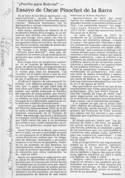 "Puerto para Bolivia?" ensayo de Oscar Pinochet de la Barra  [artículo] Bernardo Soria.