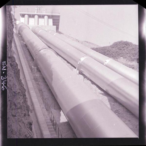 [Detalle de las tres tuberías de acero construidas por CAP : 3,60 m. de diámetro y 80 m. de longitud] [fotografía] Luis Ladrón de Guevara.