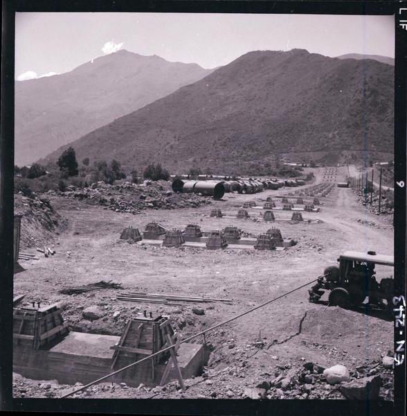 [Fundaciones para las dos tuberías de acero fabricadas por la Compañía de Acero del Pacífico, esperando su instalación] [fotografía] Luis Ladrón de Guevara.
