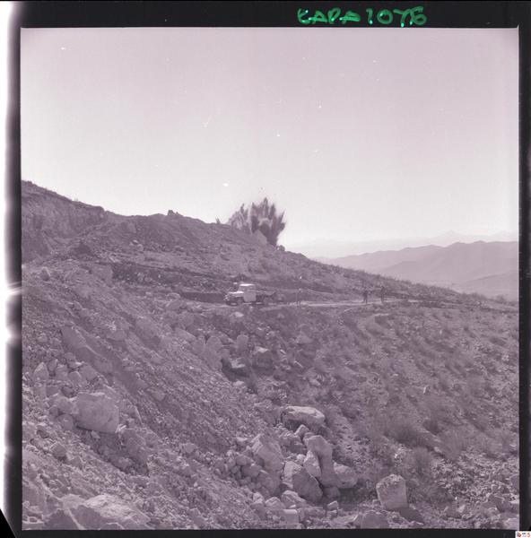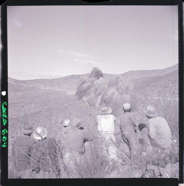 [Mineros observan tronadura en el mineral de hierro "El Algarrobo"] [fotografía] Luis Ladrón de Guevara.