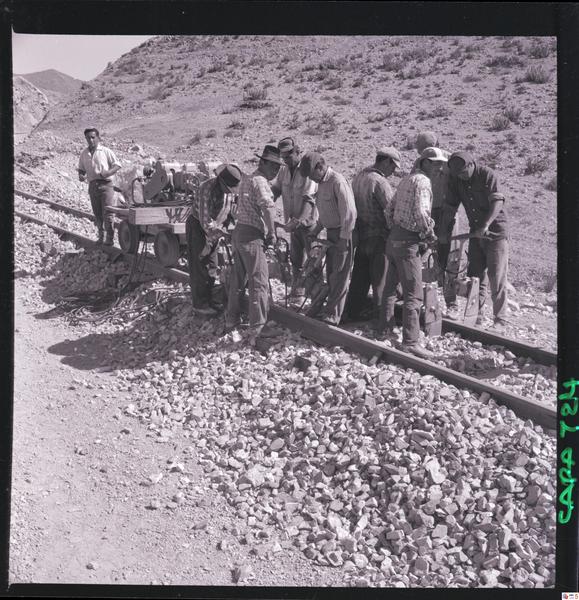 [Trabajos a orillas de la línea férrea que transporta el mineral de hierro] [fotografía] Luis Ladrón de Guevara.