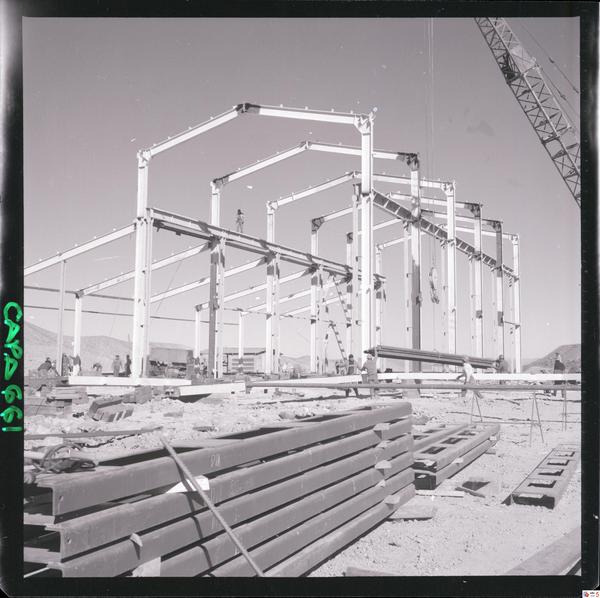 [Construcción de estructura metálica en la Mina de Hierro El Algarrobo] [fotografía] Luis Ladrón de Guevara.