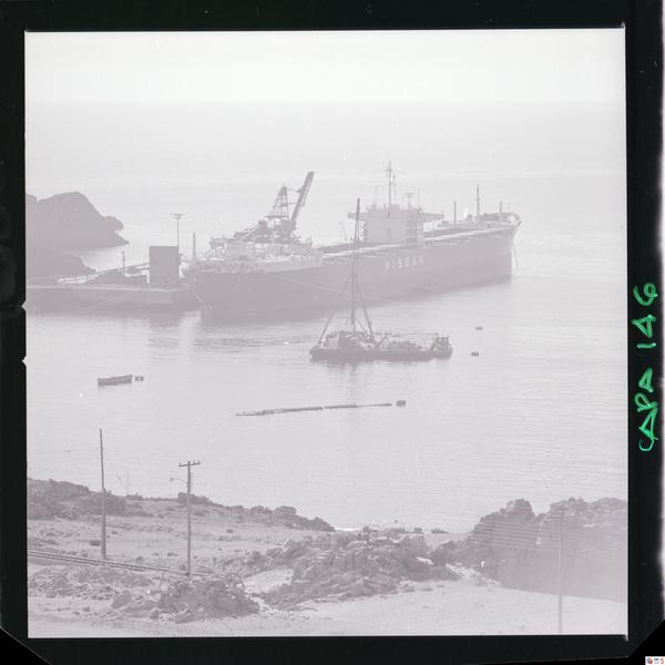 [Vista del muelle con buque atracado en zona de descarga] [fotografía] Luis Ladrón de Guevara.