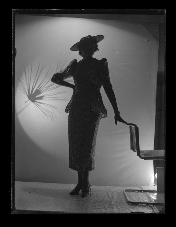 [Alicia Urbistondo y la silueta de un hombre con iluminación tenue : Composicion fotográfica] [fotografía] Alfredo Molina Lahitte.